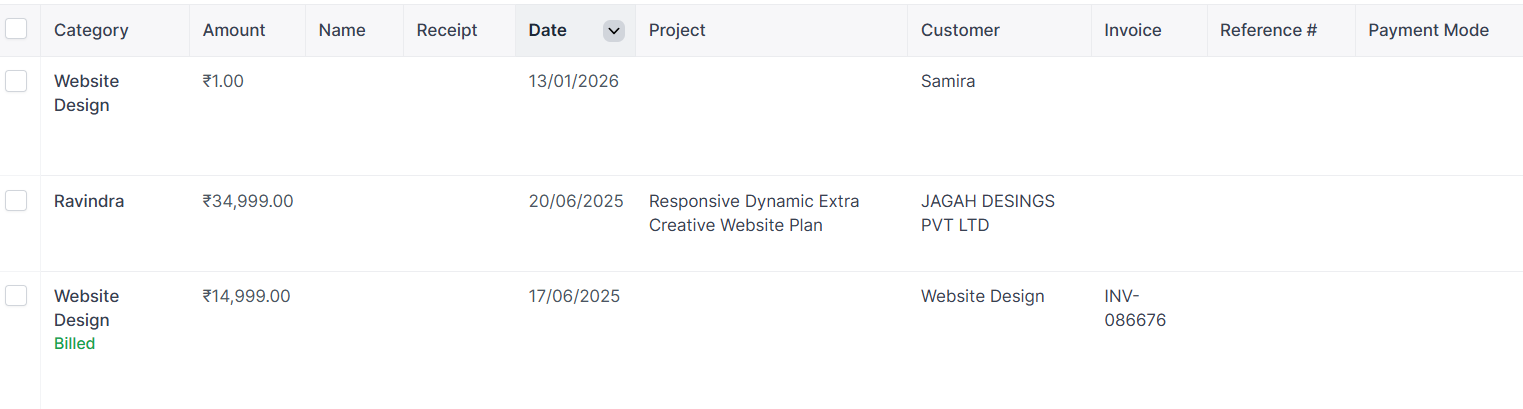 Expense categories come pre-configured. As soon as the Expenses app is installed, pre-loaded categories are available so you can start recording expenses right away.
